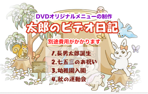 ◯ ビデオ再生機より直にDVD制作 ◯ 動画編集(立会い編集可) OP ◯ オリジナルDVDメニュー制作 OP |