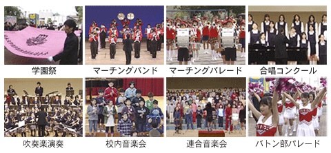 | 学園生活に於ける正課活動及び課外活動 入学・卒業/卒園・学園祭/クラブ活動・音楽発表会・お遊戯 |